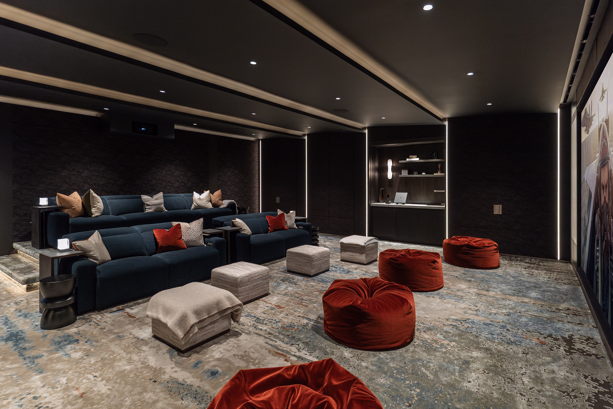 Every aspect of the room was engineered with intention: sightlines, seating geometry, sound isolation, speaker placement, ventilation, and control were all developed to ensure the experience remains consistent, reliable, and effortlessly enjoyable for every resident who uses it.