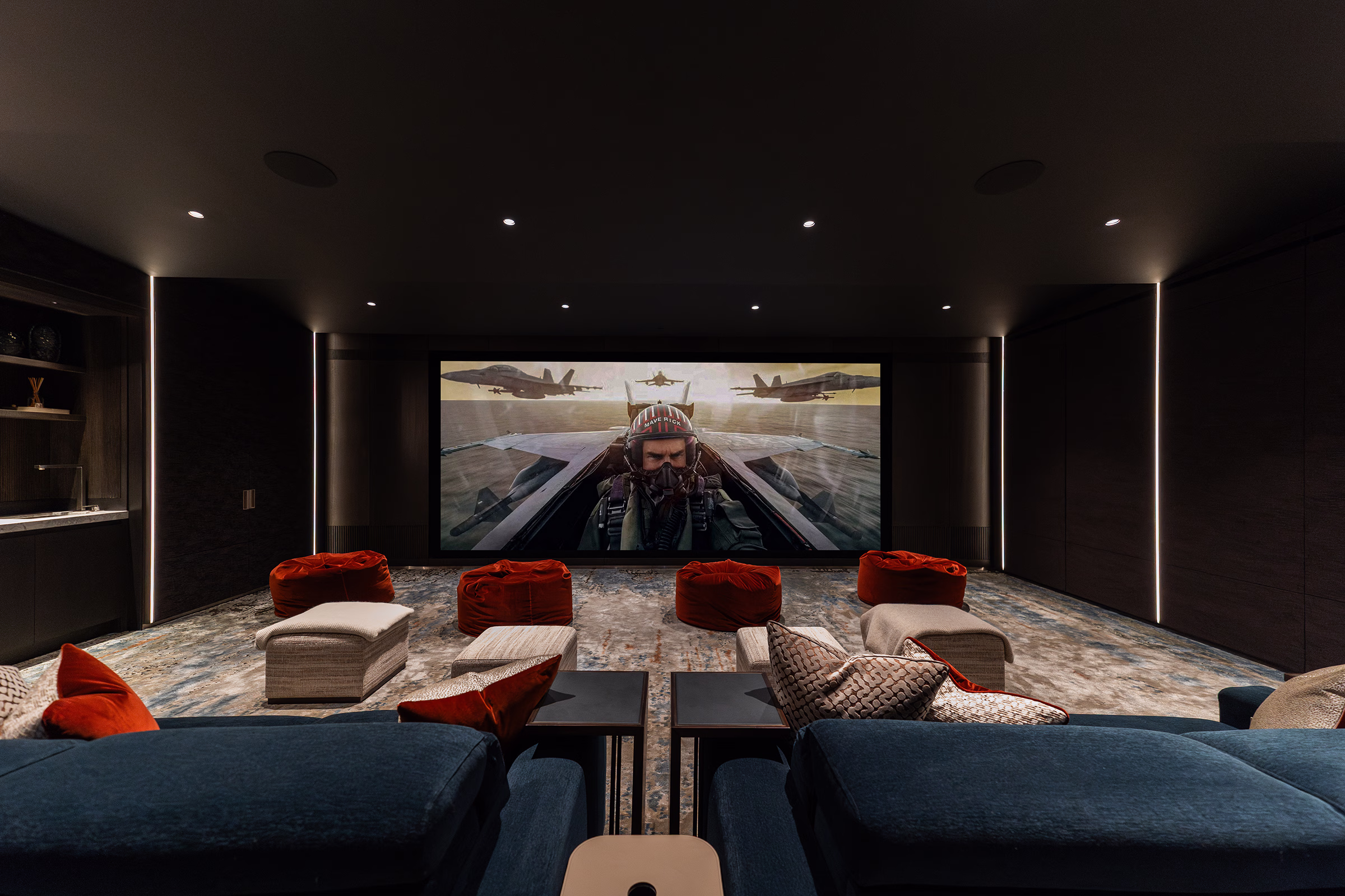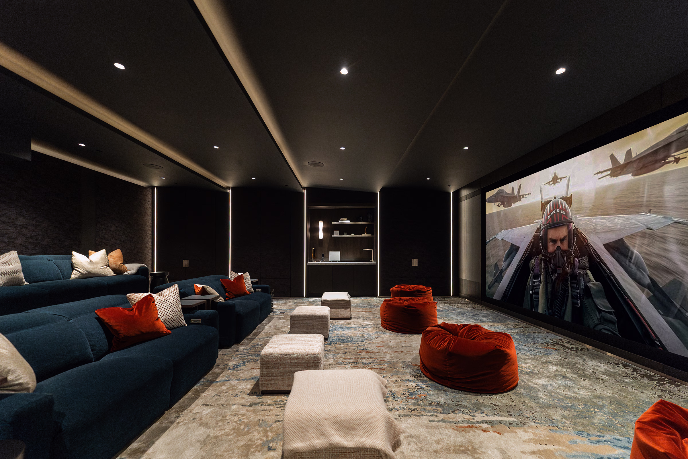 Every aspect of the room was engineered with intention: sightlines, seating geometry, sound isolation, speaker placement, ventilation, and control were all developed to ensure the experience remains consistent, reliable, and effortlessly enjoyable for every resident who uses it.