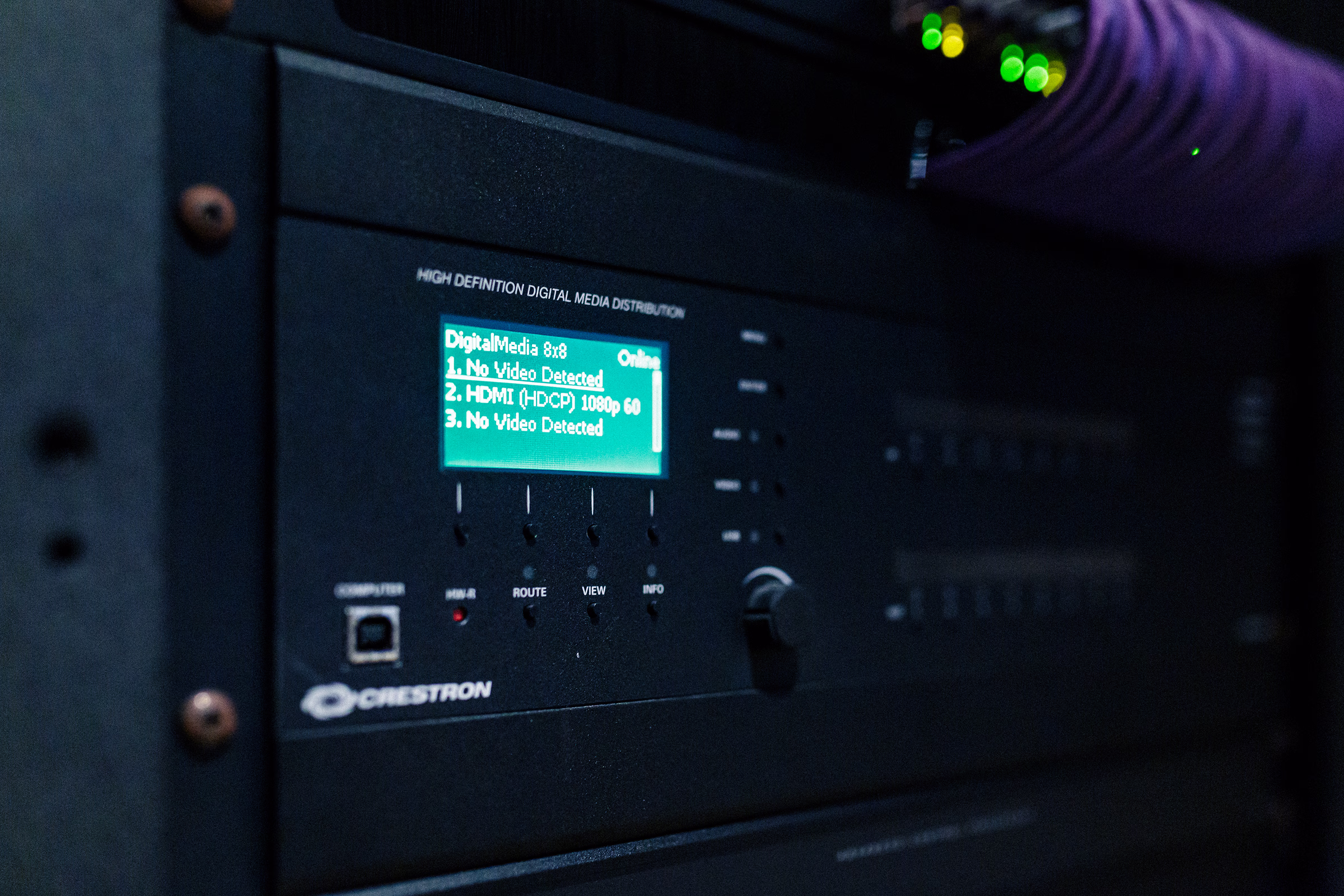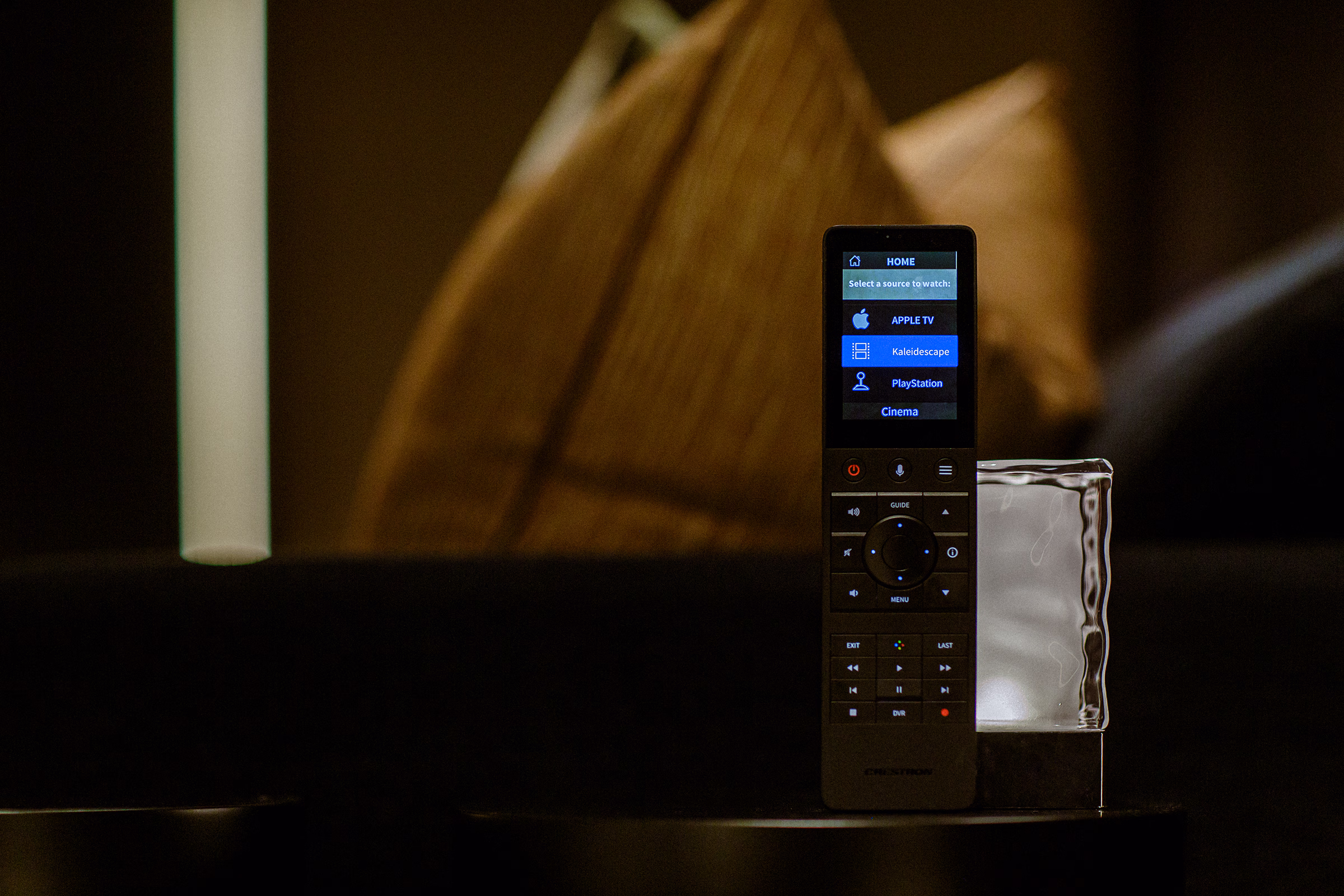 A fully integrated Crestron control system manages the AV, lighting, acoustic modes, and building interfaces, ensuring the cinema is effortless to use in a shared amenity environment. A combination of TSW-1070 touch panel, TSR-310 handheld remote, and a dedicated iPad provides intuitive, reliable operation for both residents and building staff.