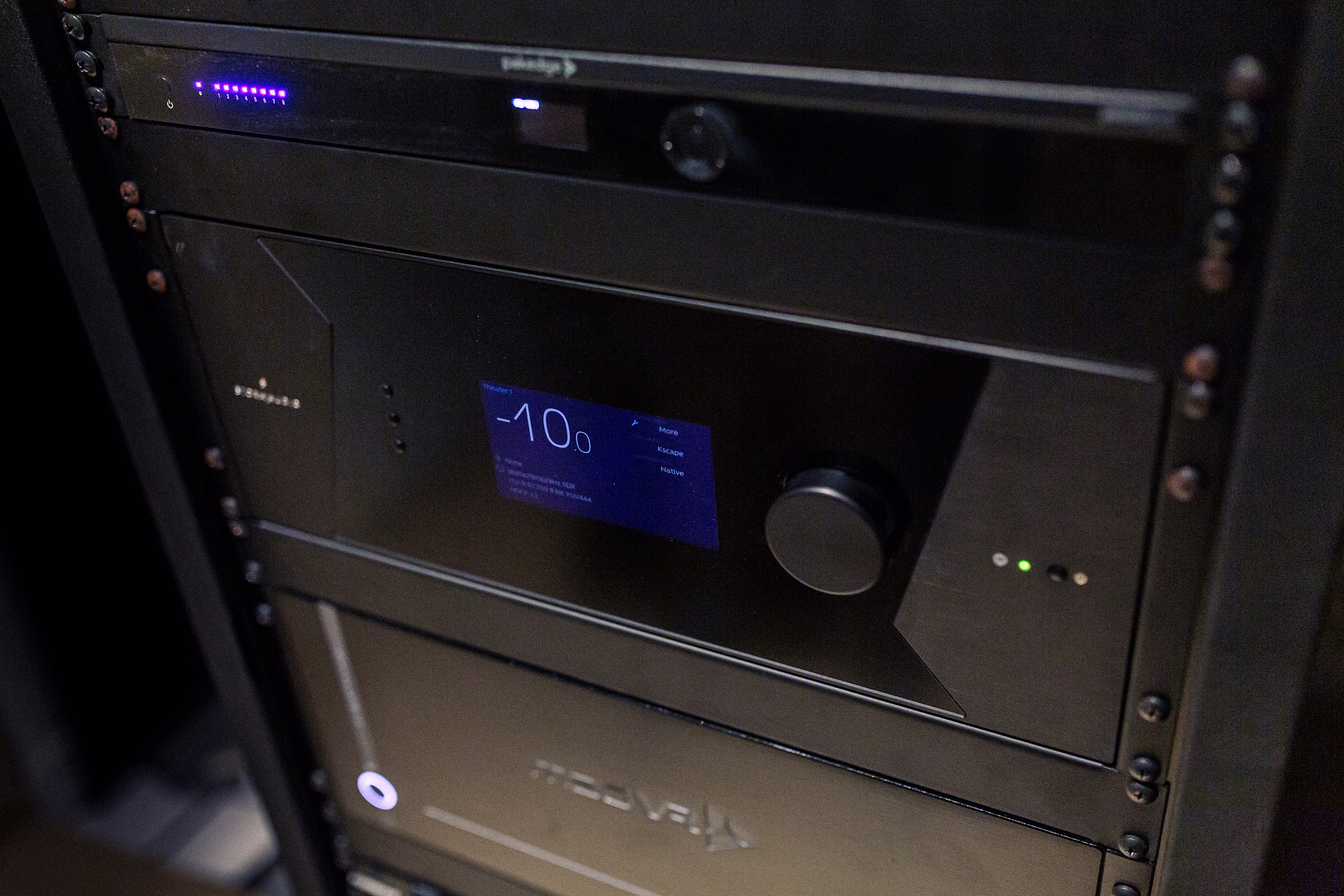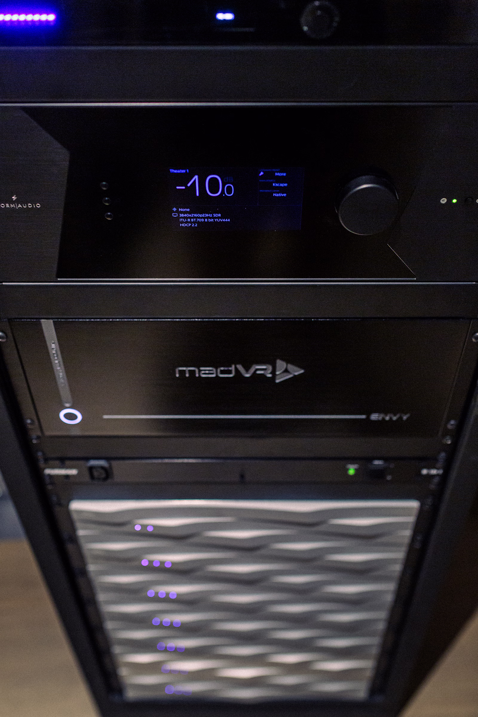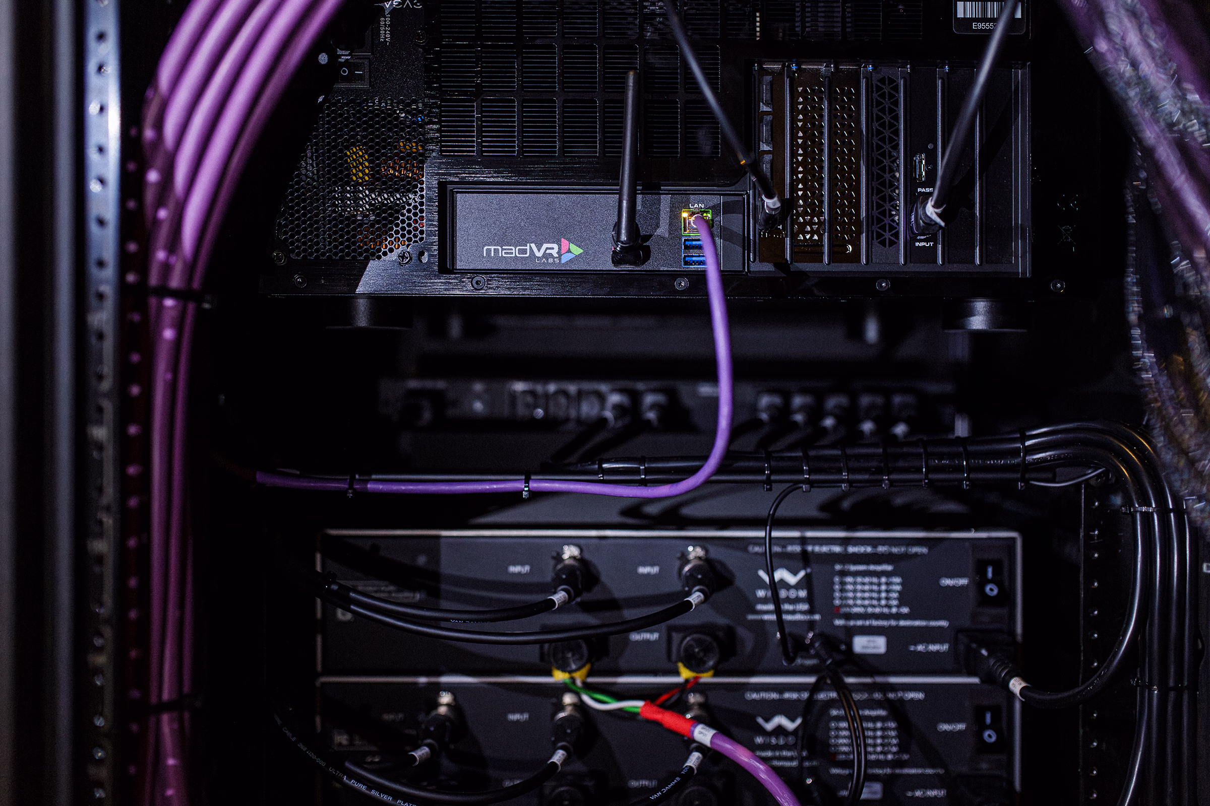 To maximise performance, a MadVR Envy Extreme MKII manages real-time tone-mapping, optimisation, and AI-driven enhancement. Content is delivered through a Kaleidescape Strato movie server for true reference playback, with additional flexibility from Apple TV 4K.